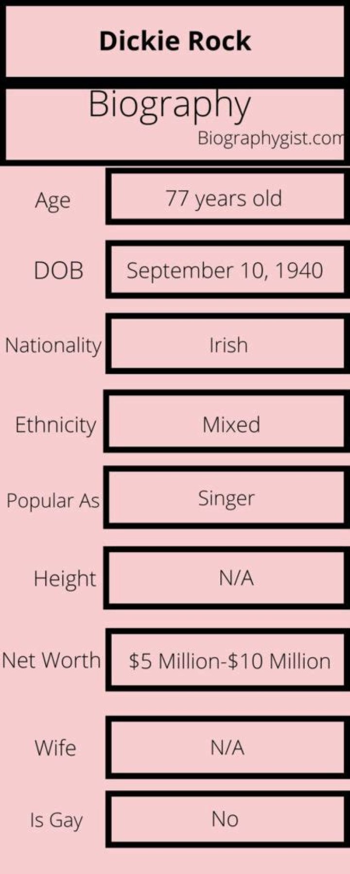 Dickie Rock- Net Worth, Biography, Wife, Age, Height, Career