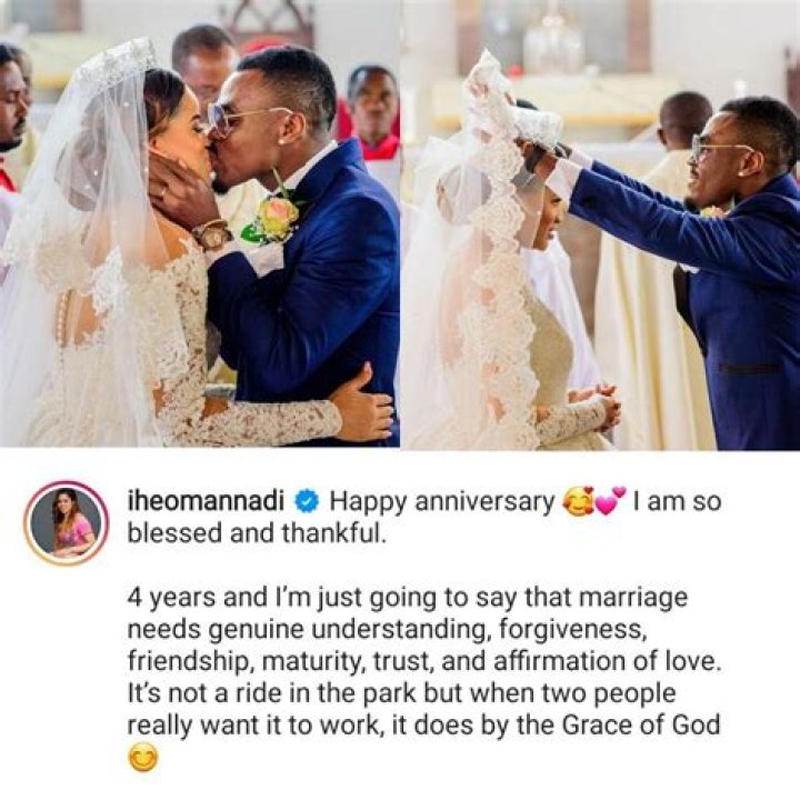 The ex-beauty queen Iheoma Nnadi shared photos of their wedding to mark their 4th wedding anniversary expressing how thankful she is with her husband Emmanuel Emenike as she shares her experience in these 4 years.