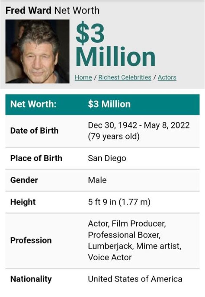 Explore Fred Ward net worth, age, height, bio, birthday, wiki, and salary! In this article, we will discover how old is Fred Ward? Who is Fred Ward dating now & how much money does Fred Ward have?