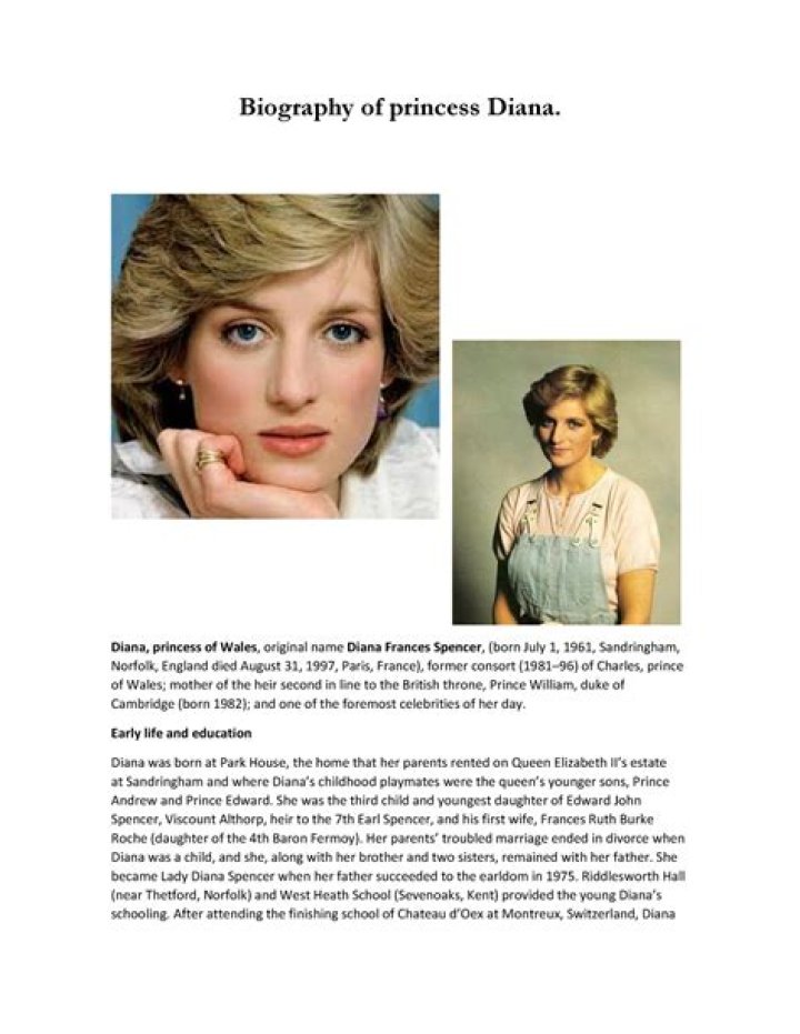 Diana was born to Frances Spencer, Viscountess Althorp Roche, and John Spencer, Viscount Althorp. She had ten siblings.